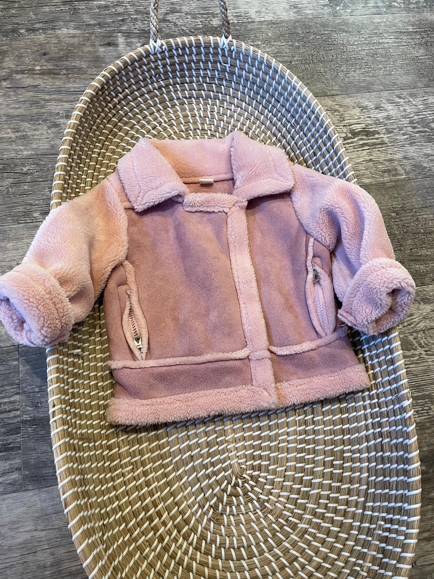 A super cute faux suede pink jacket, there’s so much to love about this jacket. It has little zip pockets, a zip closure and two shades of pink throughout.