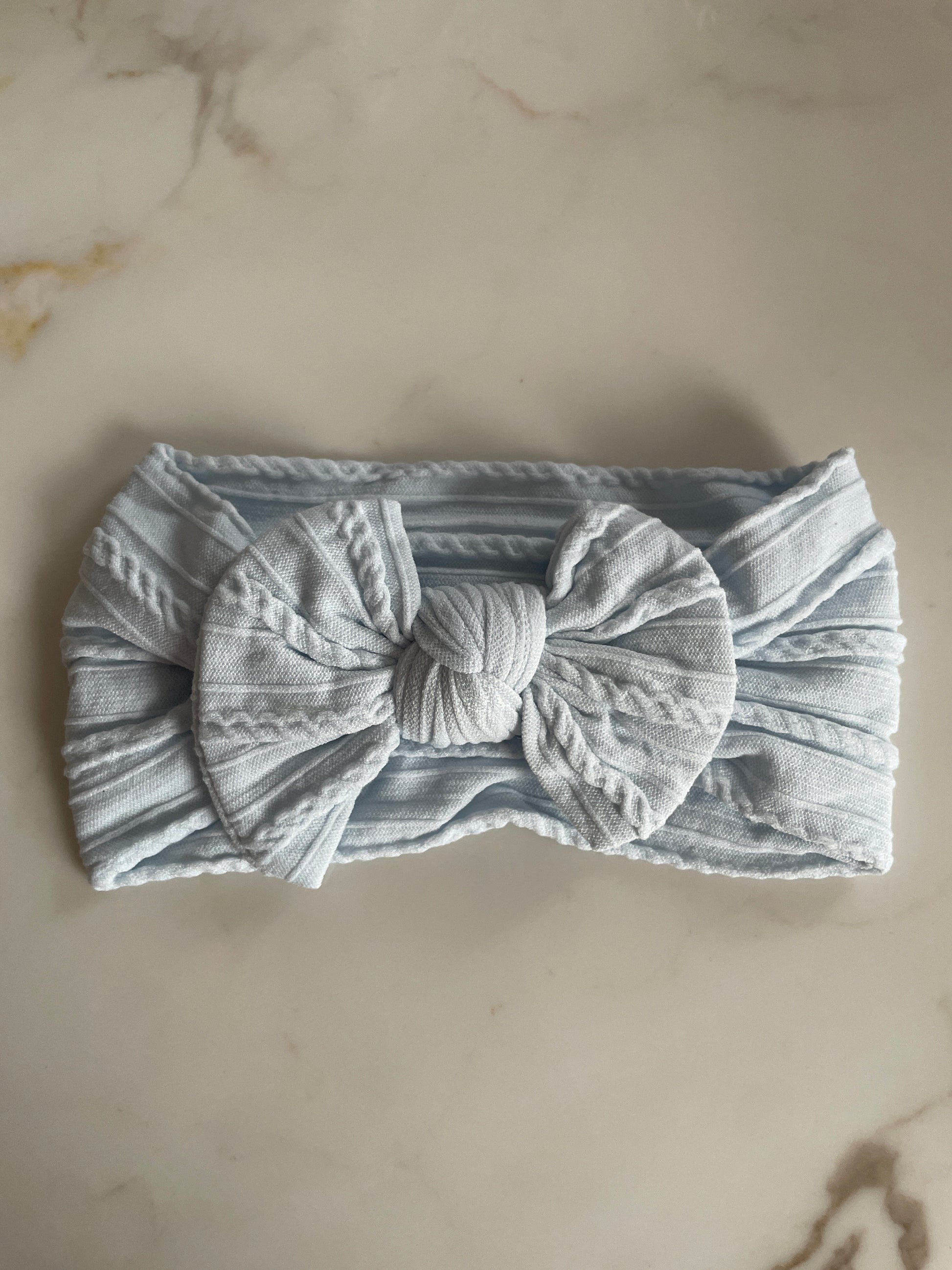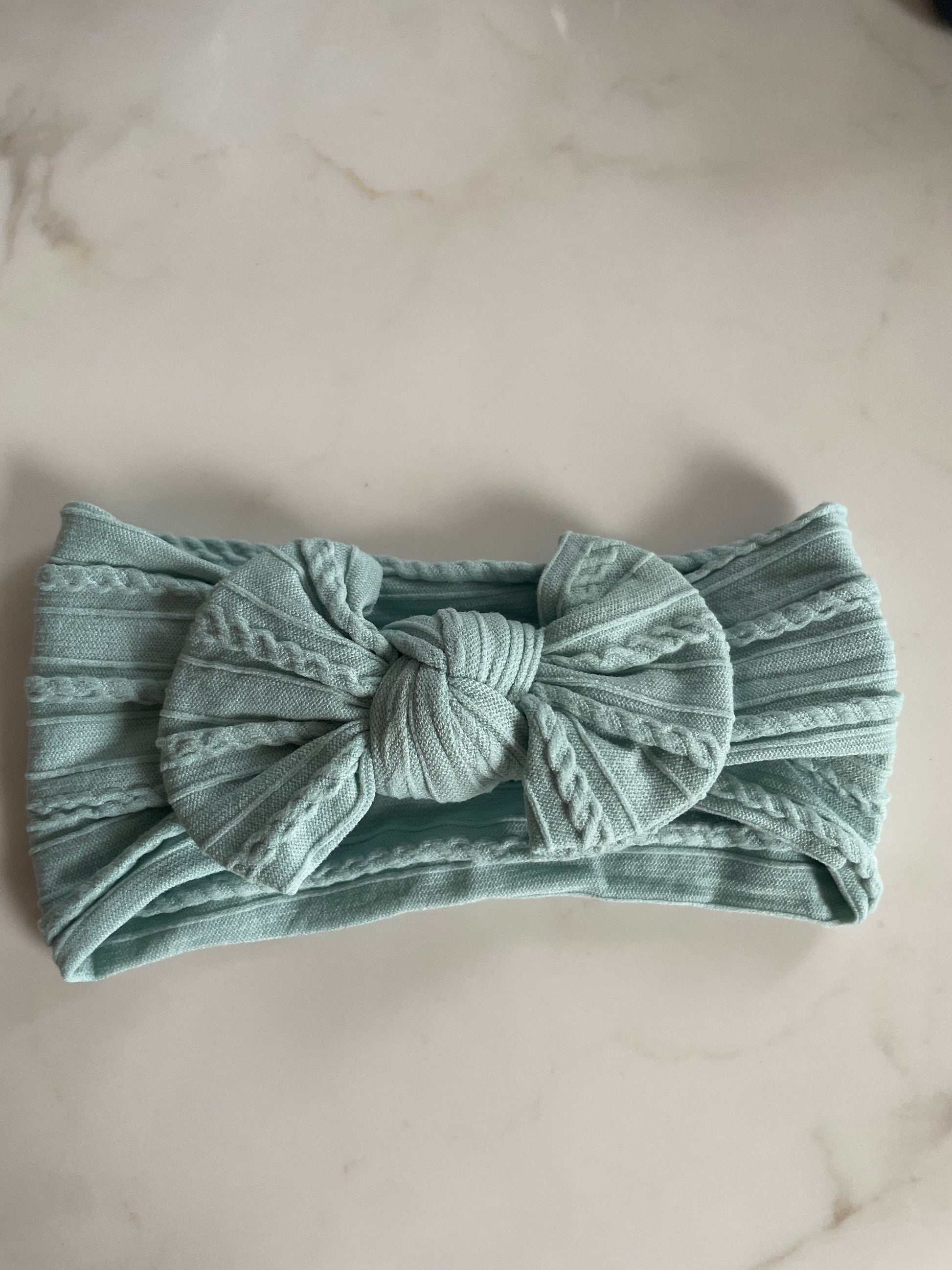 These cute nylon cable knit bow headbands are so soft and comfortable, they finish off any outfit perfectly. From new born right up in age.