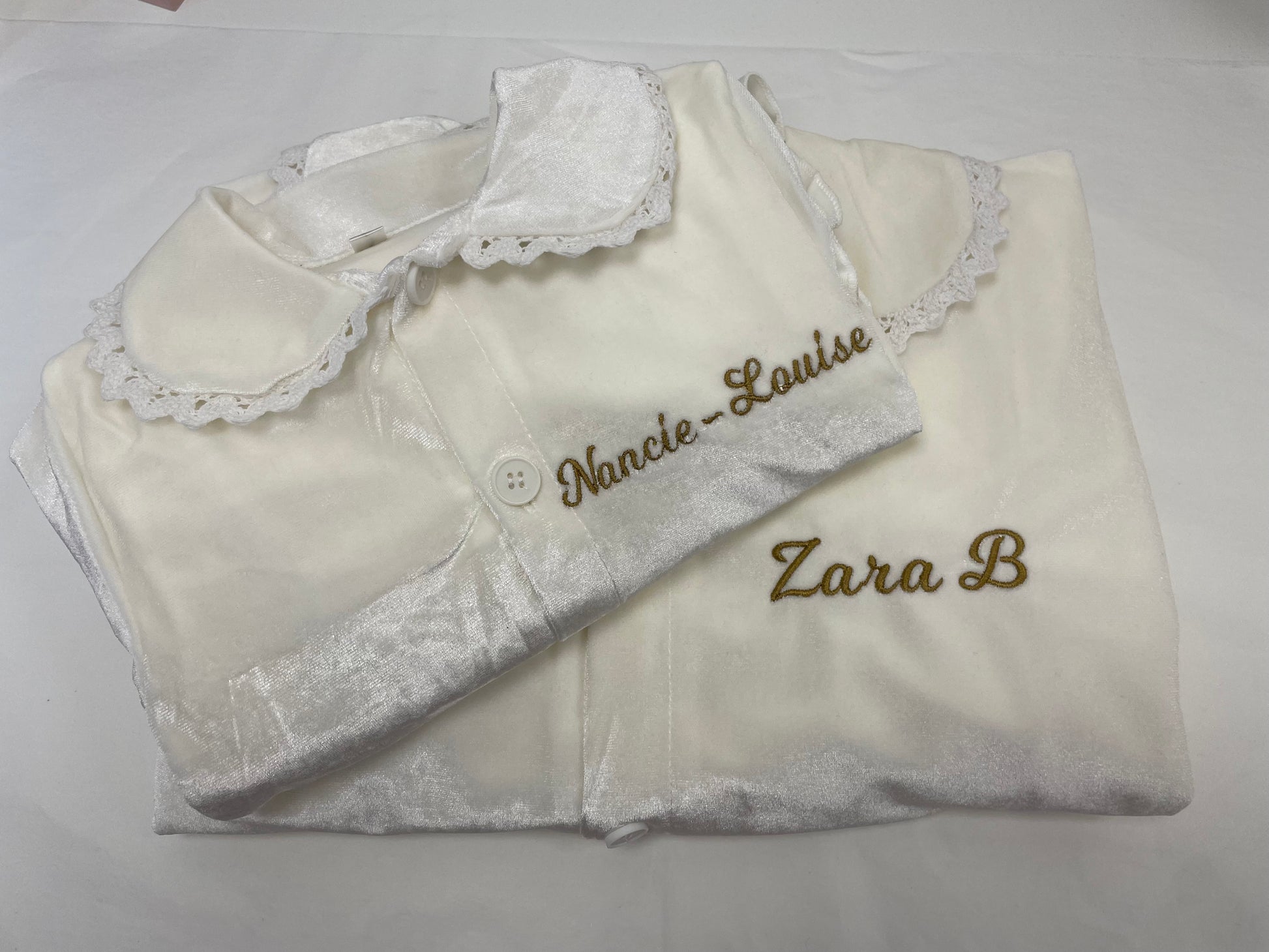 Personalised luxury white velvet girls pyjamas
