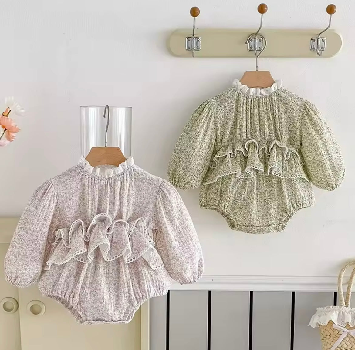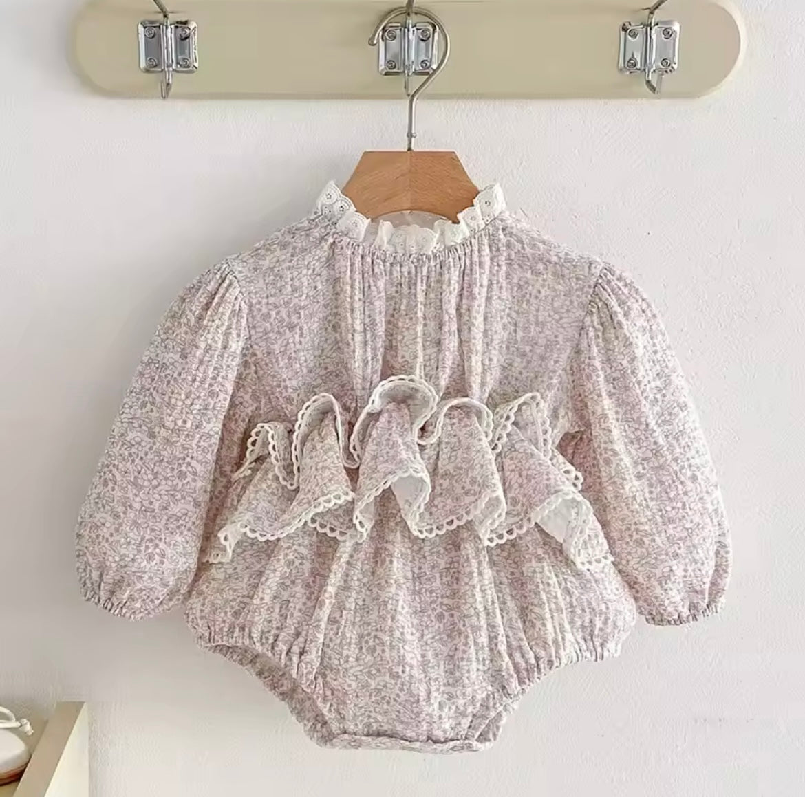 Pink floral frill romper