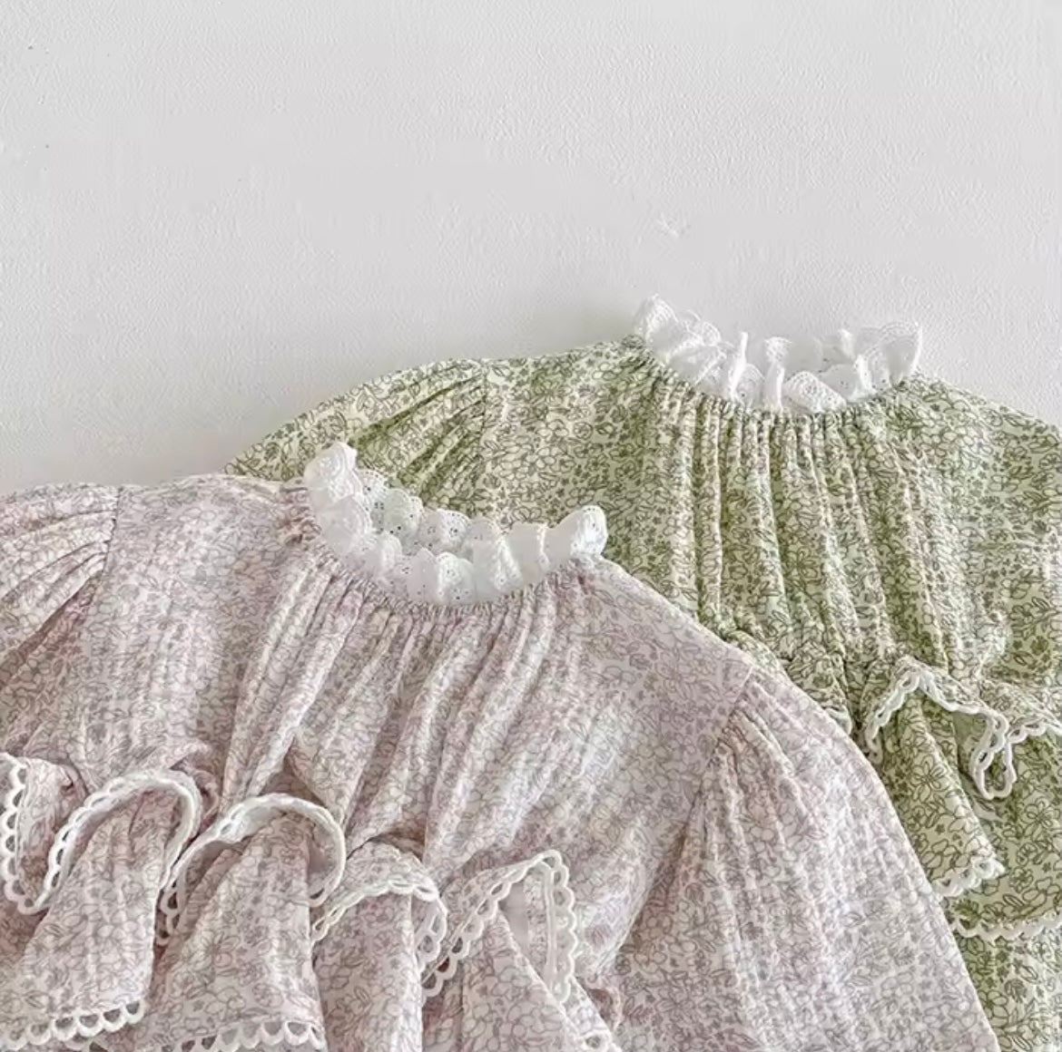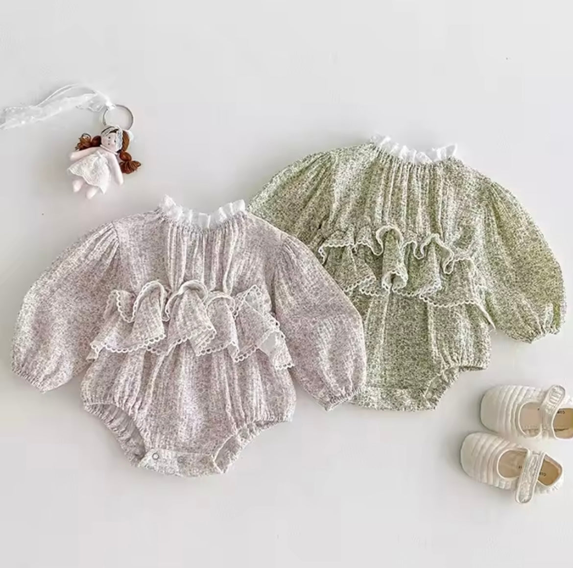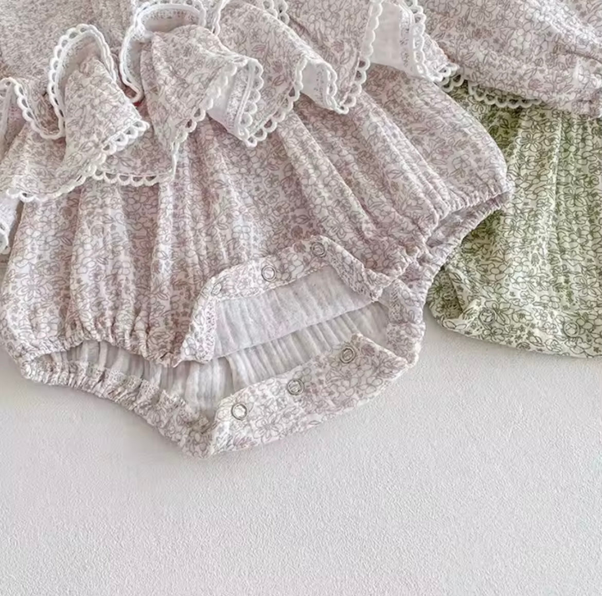 "Get ready for some serious frills with our pink floral romper! Made from soft muslin material, this baby romper features a high neckline and waist with playful frill details. And let's not forget the adorable pink floral pattern - perfect for your little fashionista. Order now and get ready for some frilly fun!"