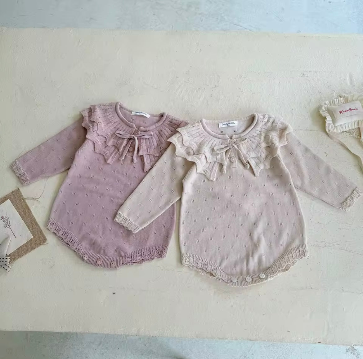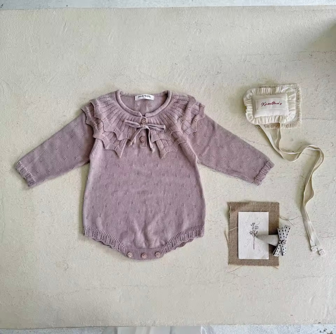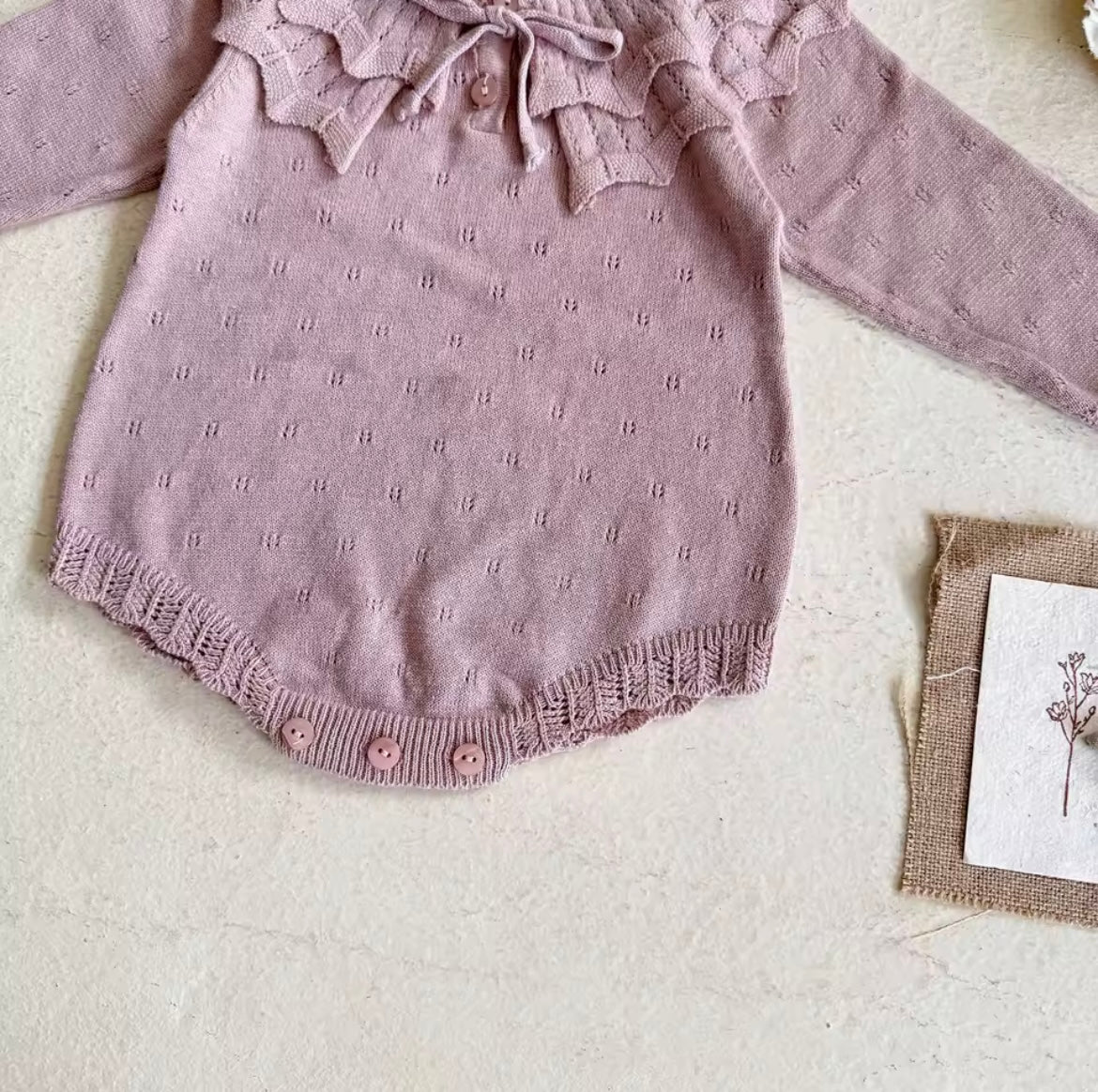 This playful dusty pink romper features a frilly neckline and press stud fastenings, making it perfect for your little one to play in. Made of soft cotton, this romper comes in both dusty pink and PREORDER greige. Great for babies and toddlers alike!