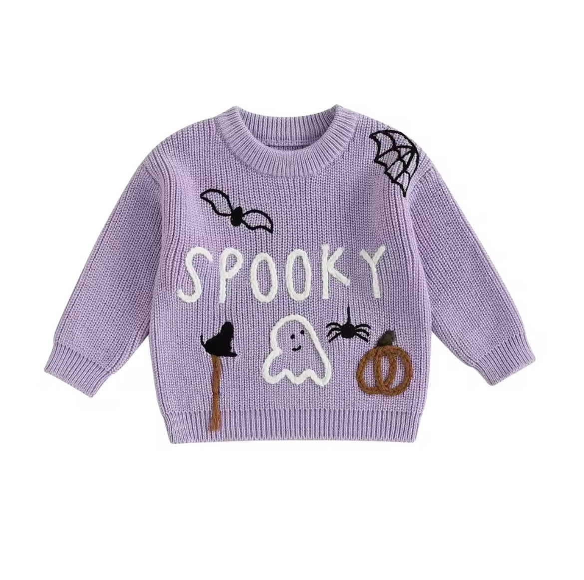 Get ready for some spooky fun with our Halloween knitted jumper! This children's jumper features a playful "spooky" on the front, perfect for the holiday season. Made from cozy knit material, it's sure to keep your little ones warm and stylish. Don't miss out on this quirky and fun Halloween essential!