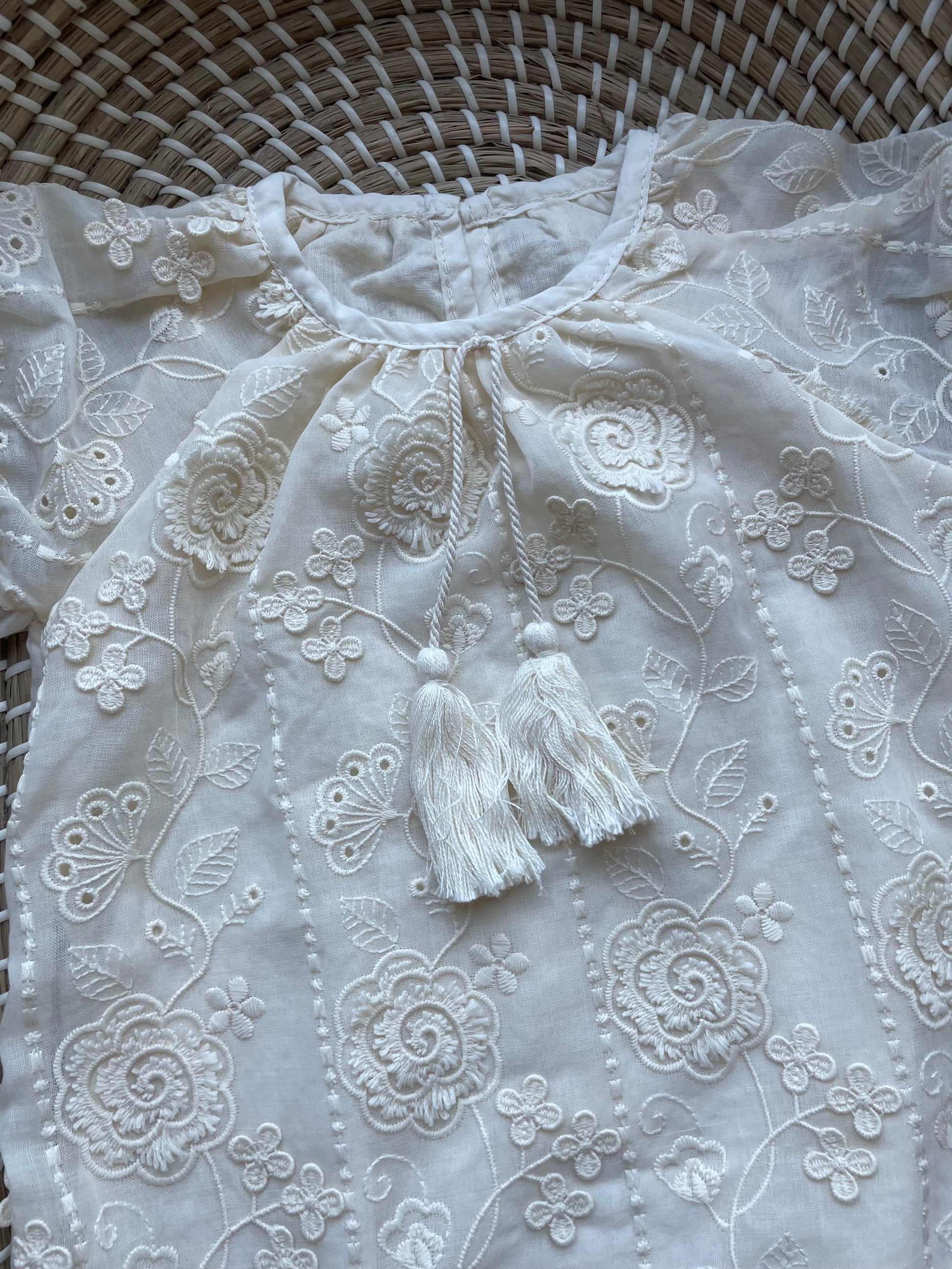 The Harper Boho Dress is a charming cream toddler dress with playful tassels adorning the neckline. Its short sleeves and bohemian flair make it perfect for little adventurers who love style and comfort. Every detail is thoughtfully crafted to bring out your child’s unique spirit.