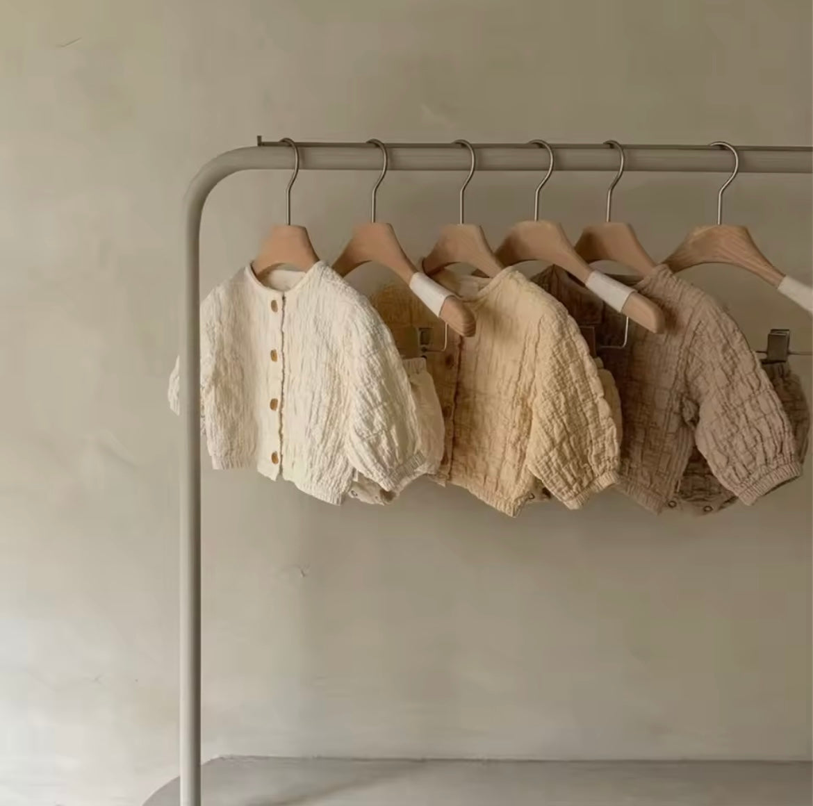 Keep your little one cozy and cute in the Poppy 2pc set! This charming outfit pairs a trendy cream button-up thin jacket with matching jam pants made from soft cotton. The elasticated waistband ensures a comfy fit for babies and toddlers on the go. Available now in neutral cream, with a stylish beige option coming soon for preorder. Perfect for playdates or snuggly days at home!