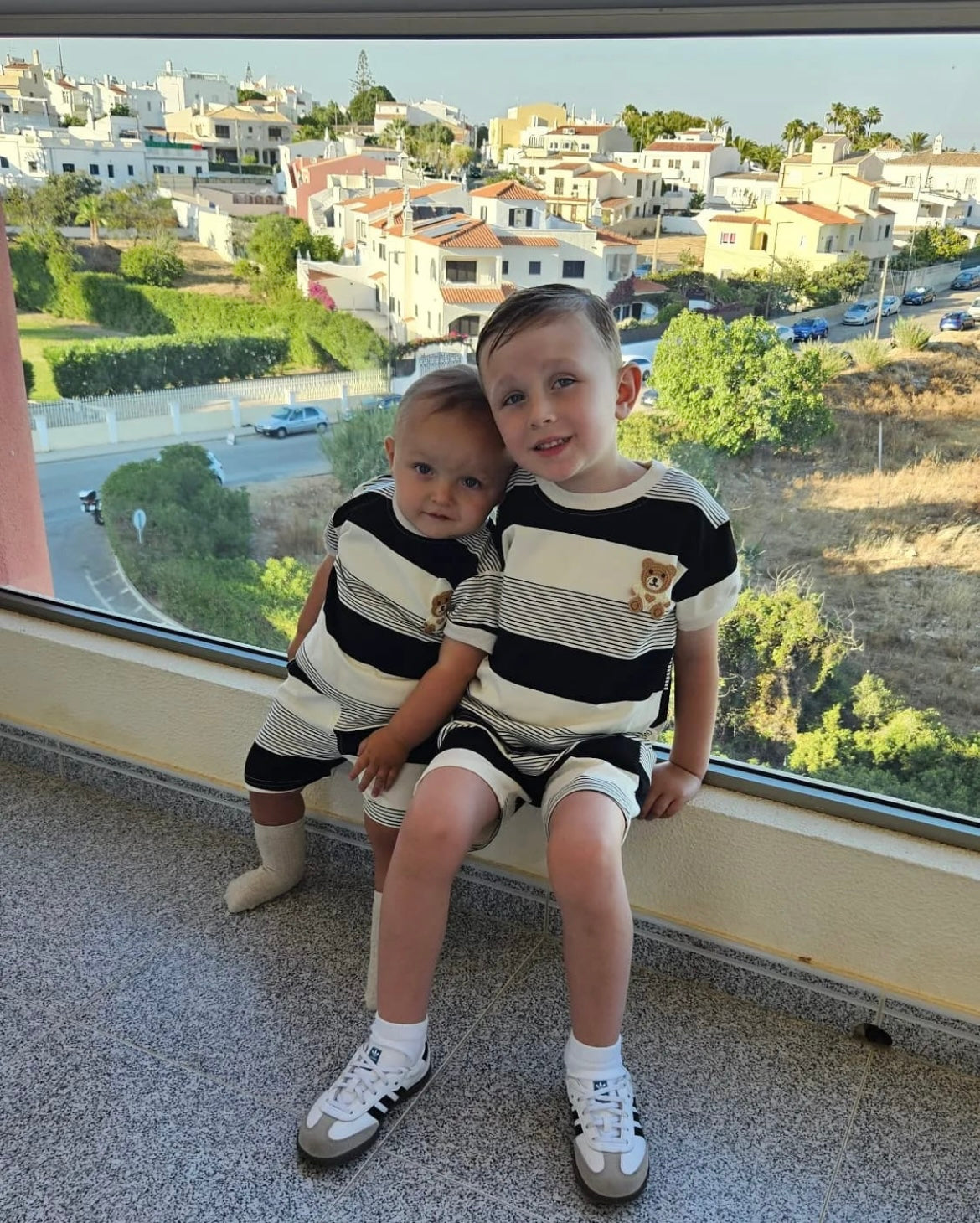 A super comfortable striped shorts and t-shirt set. We love the embroidered teddy on the right hand side. A great little spring/summer addition with an elasticated waistband for a great fit.